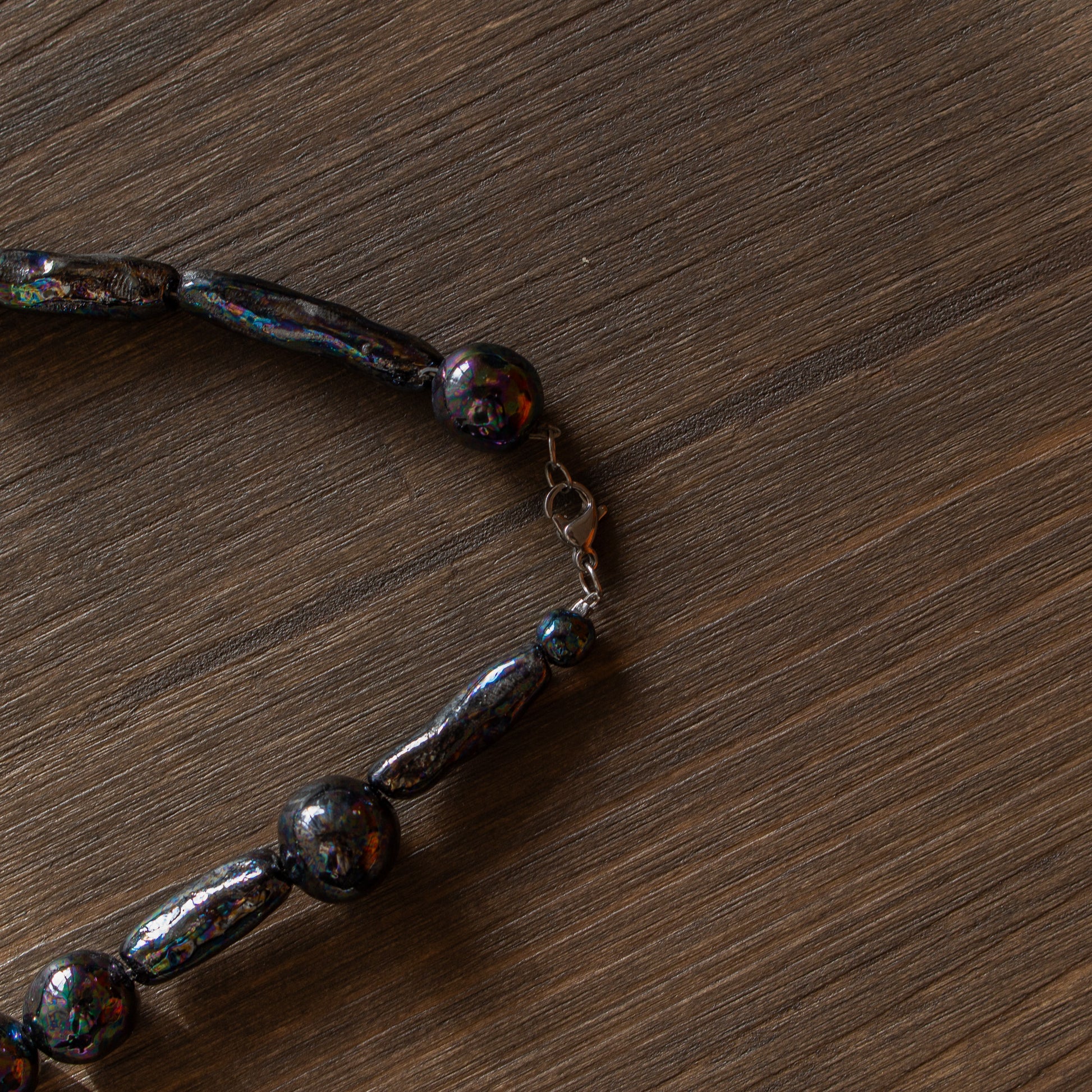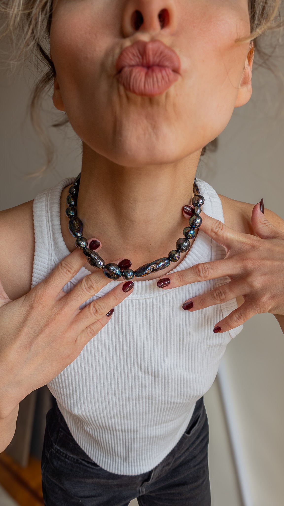 Abyss is the heart of the Midnight Clay collection – a necklace that celebrates the darkness we carry within us – the one we are proud of, yet reveal only with care. It embodies the feeling that turns our femme fatale darkness into fearlessness. Abyss is a story of transformation – when clay becomes a pearl, darkness finds its shimmer, and imperfection turns into quiet strength.