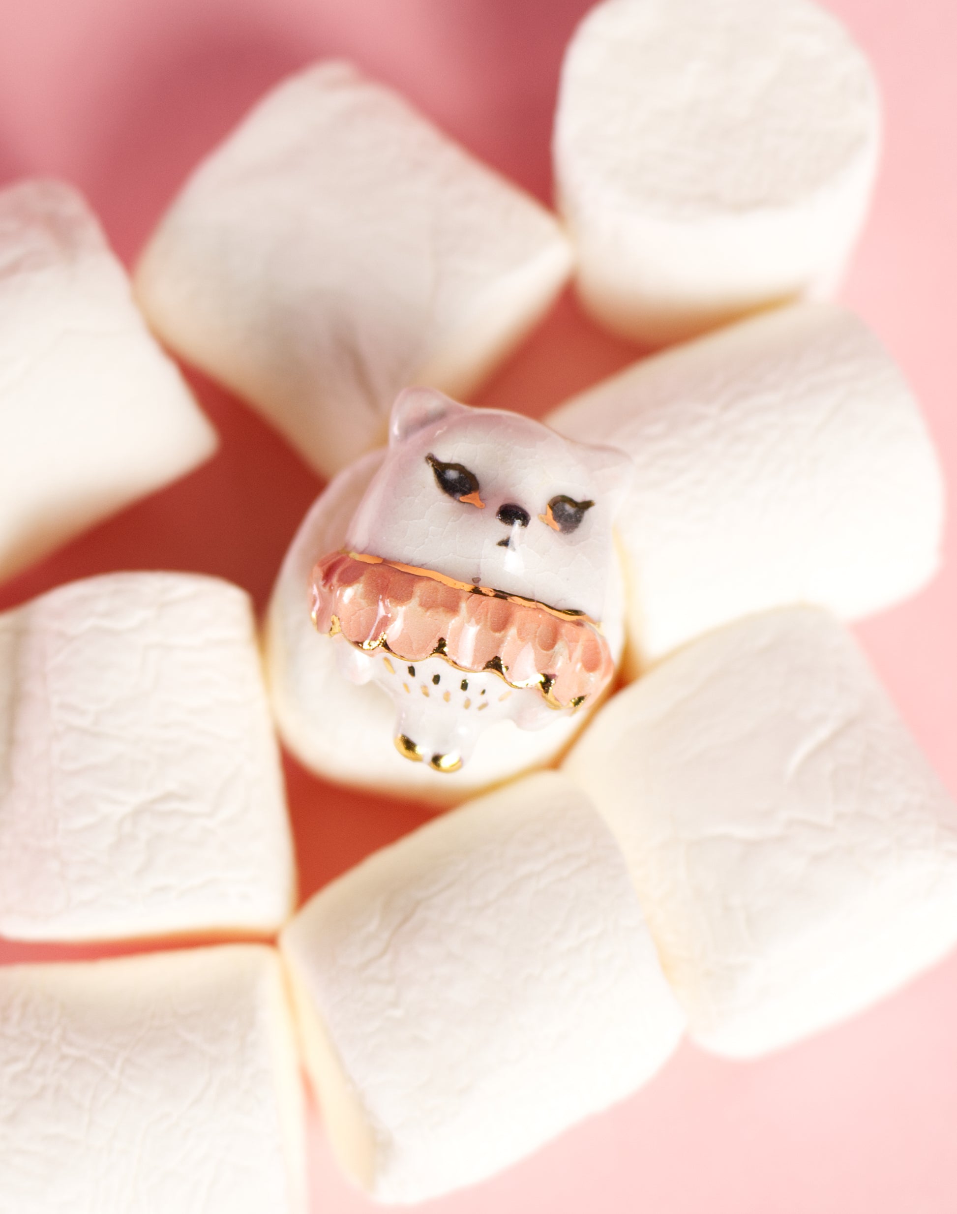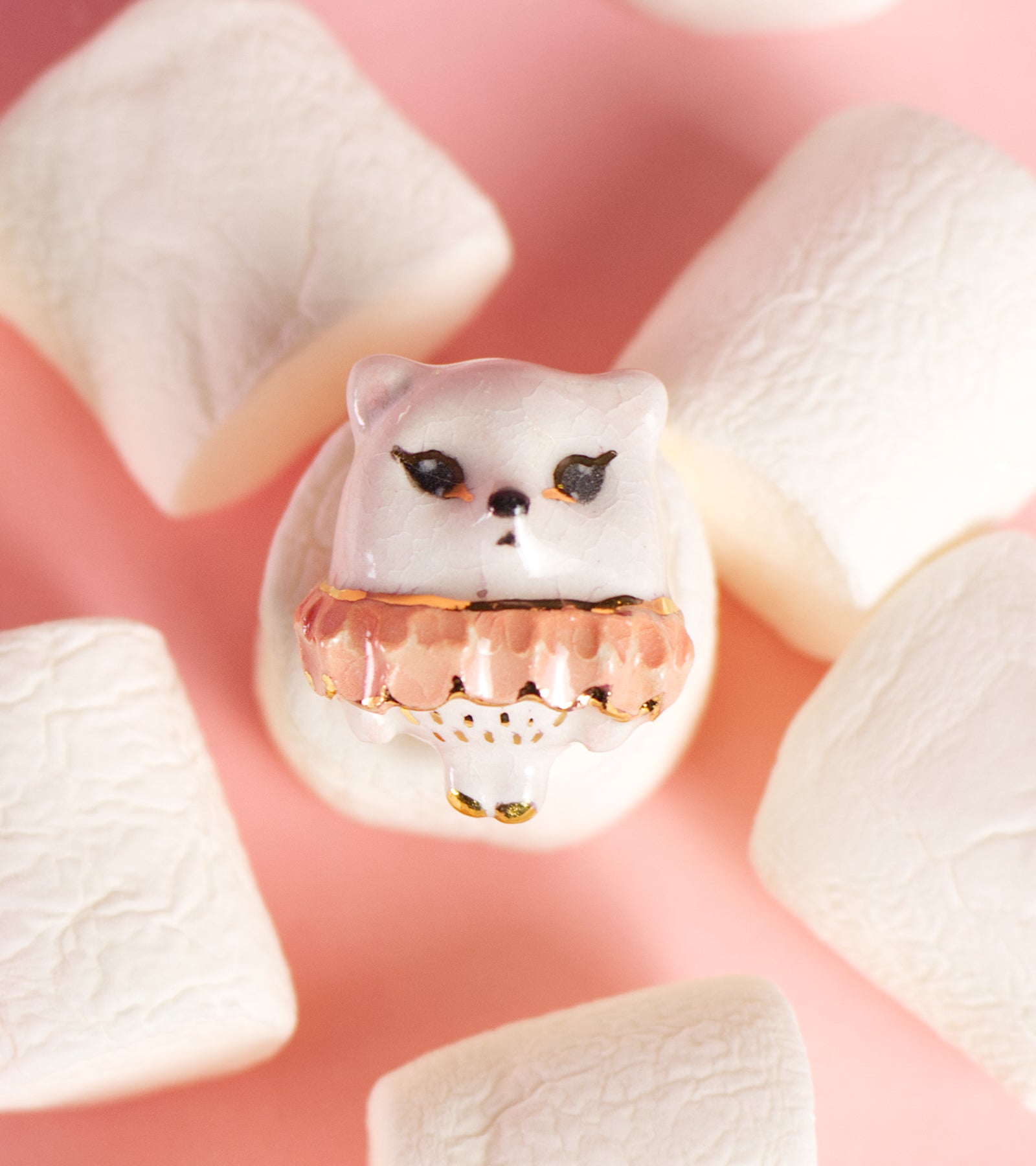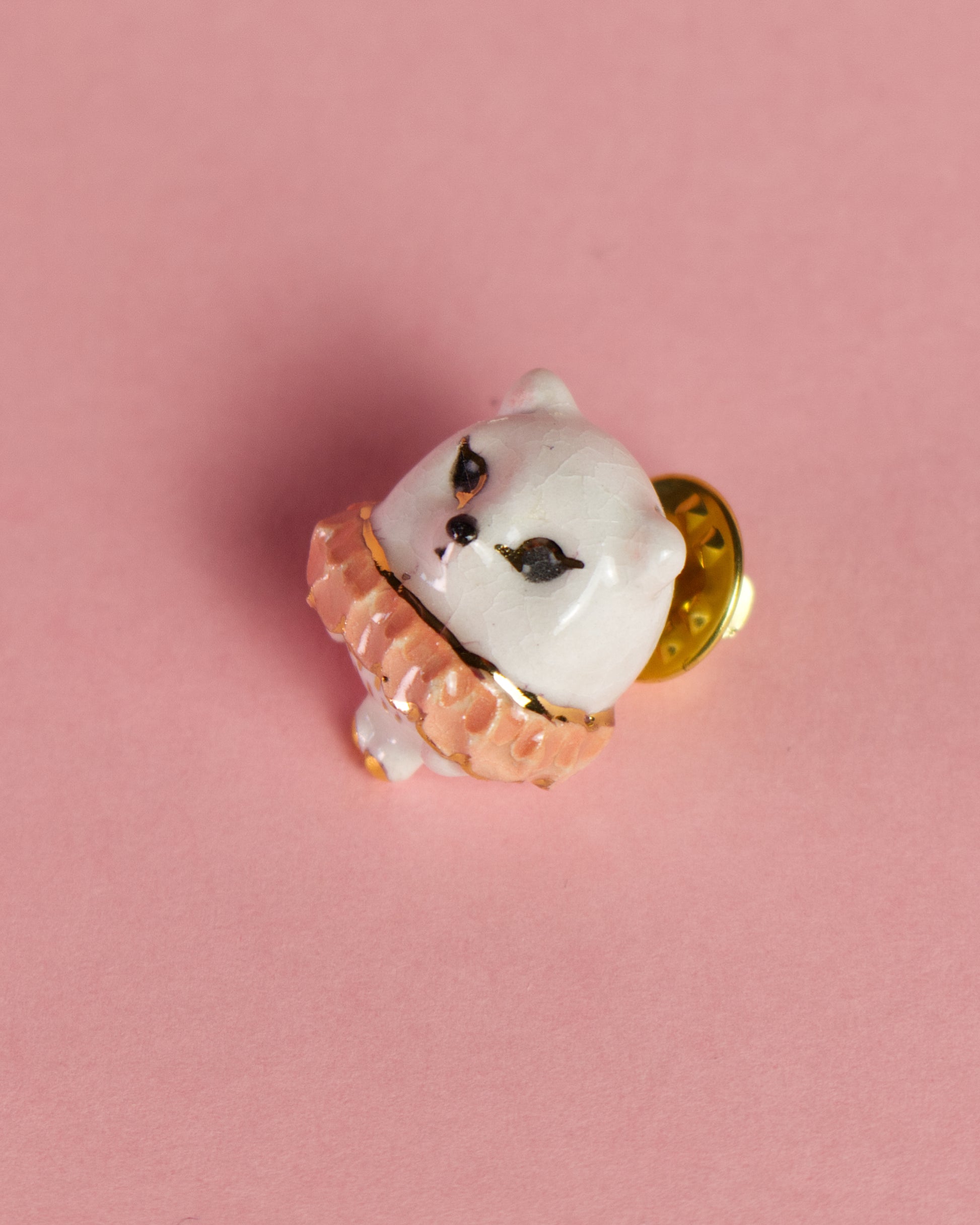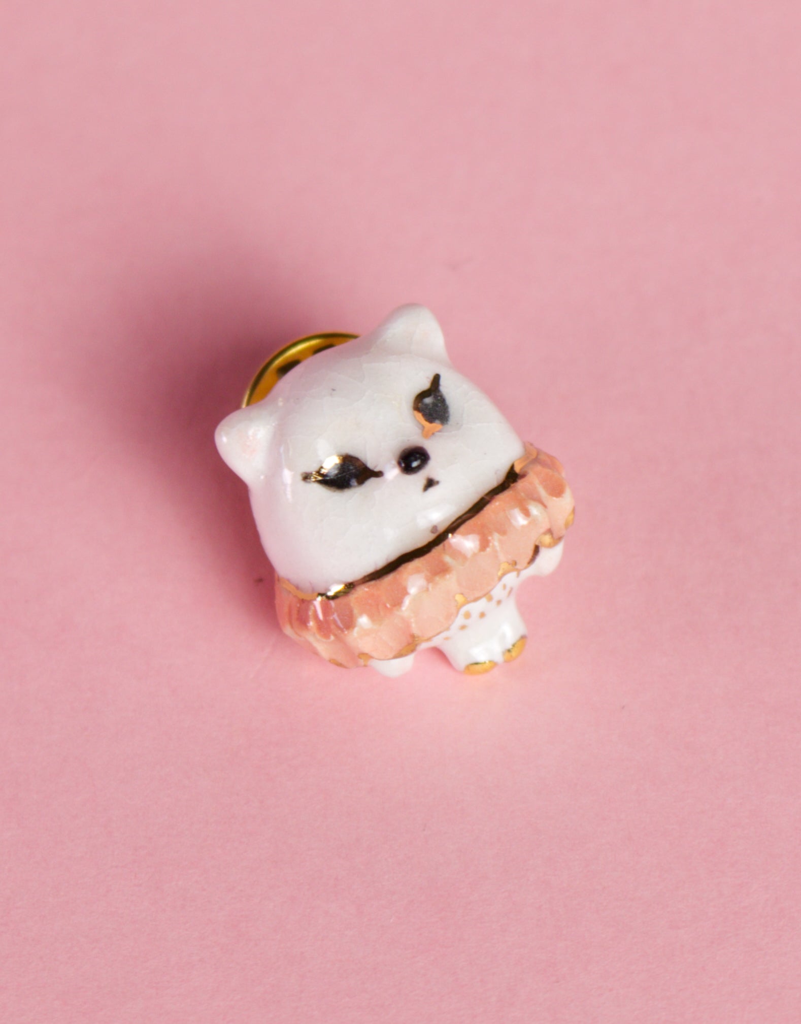 Ručne tvarovaná keramická brošňa – mačka Rosie (druhý výpal pri 1040 °C)