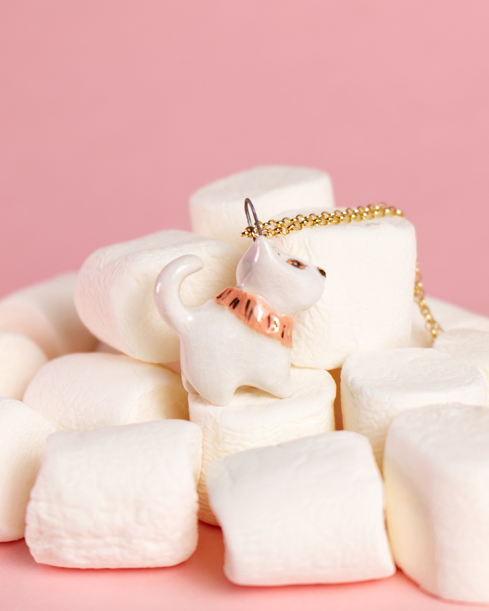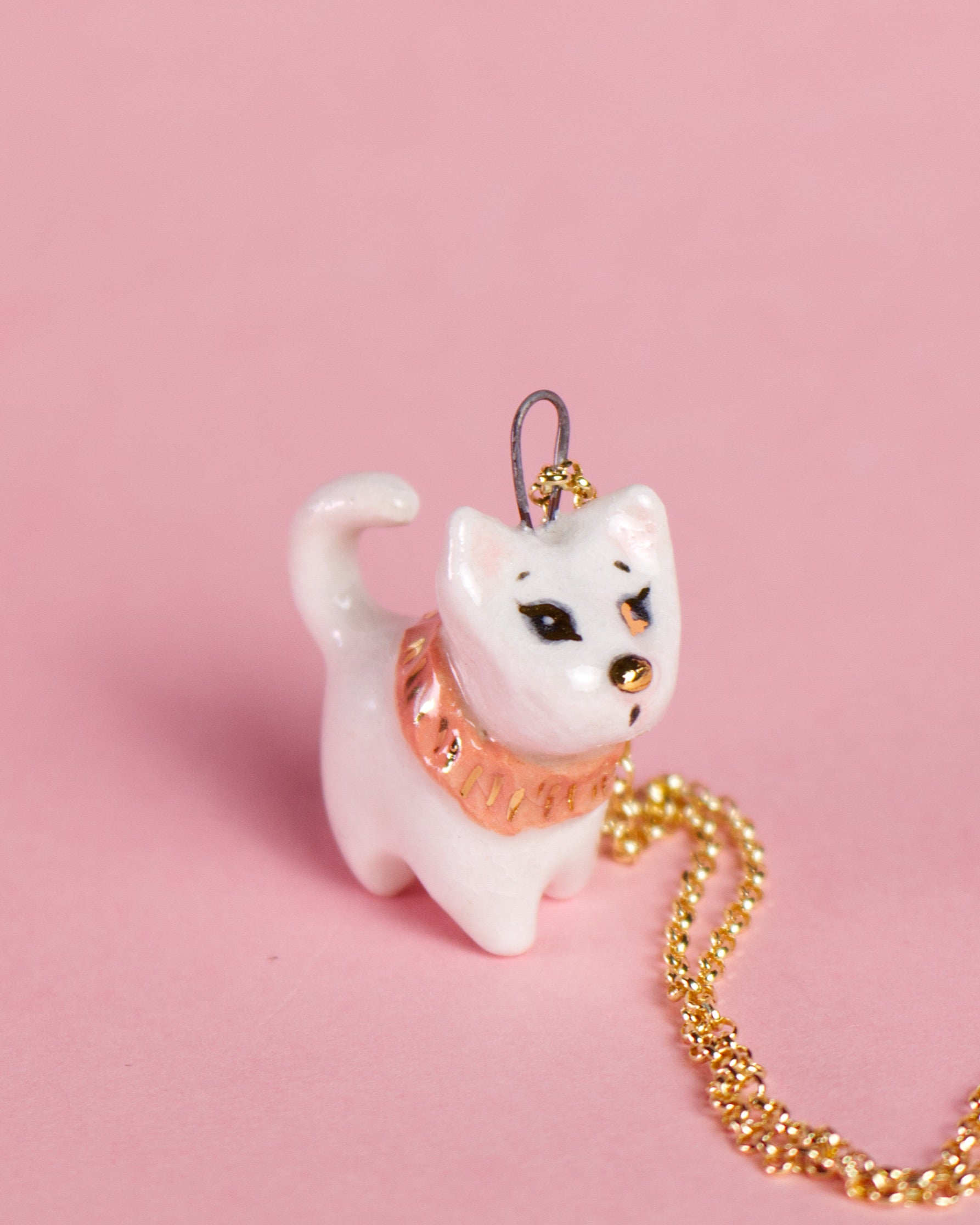 Ručne tvarovaný keramický prívesok – mačička Ellie (druhý výpal pri 1040 °C)