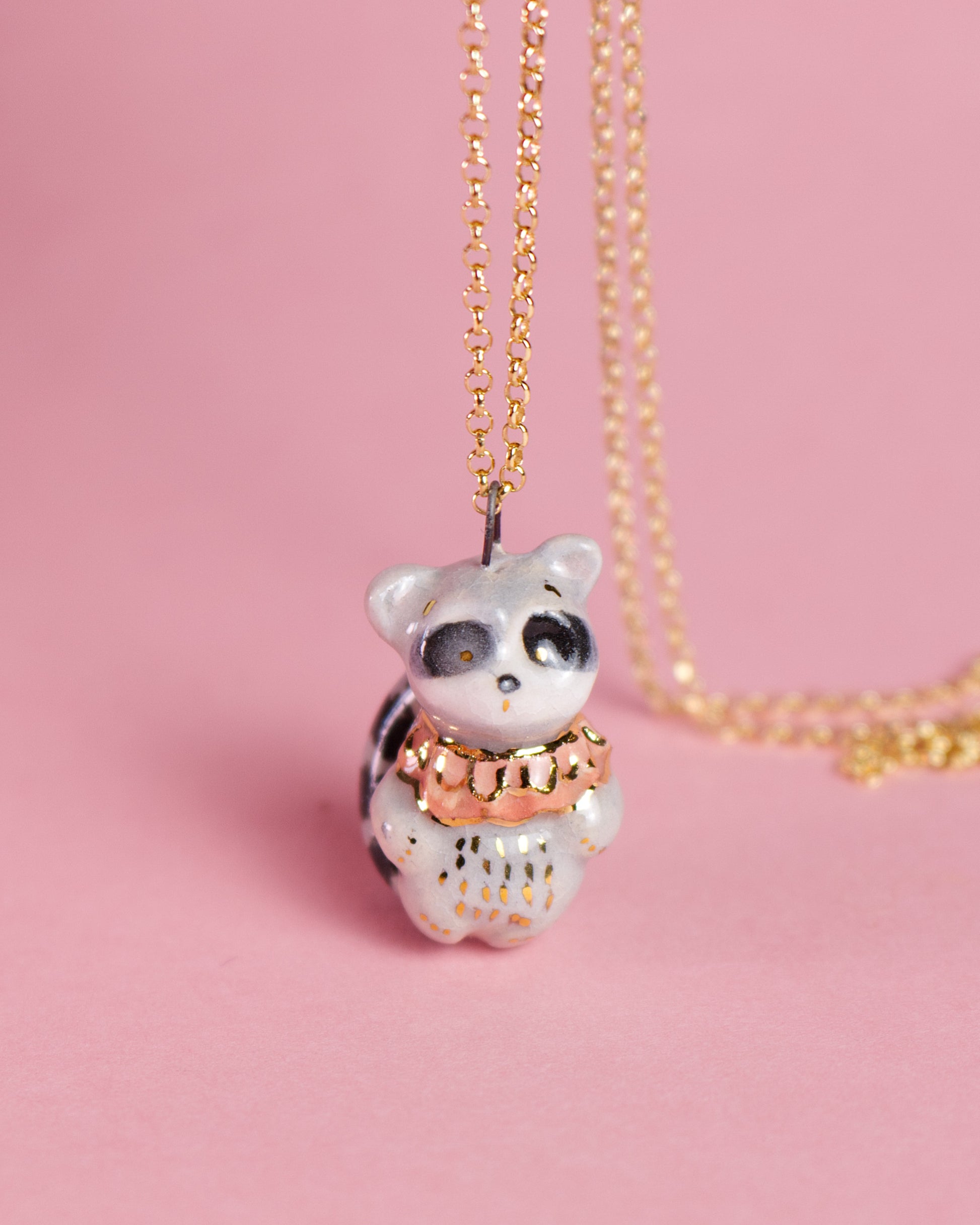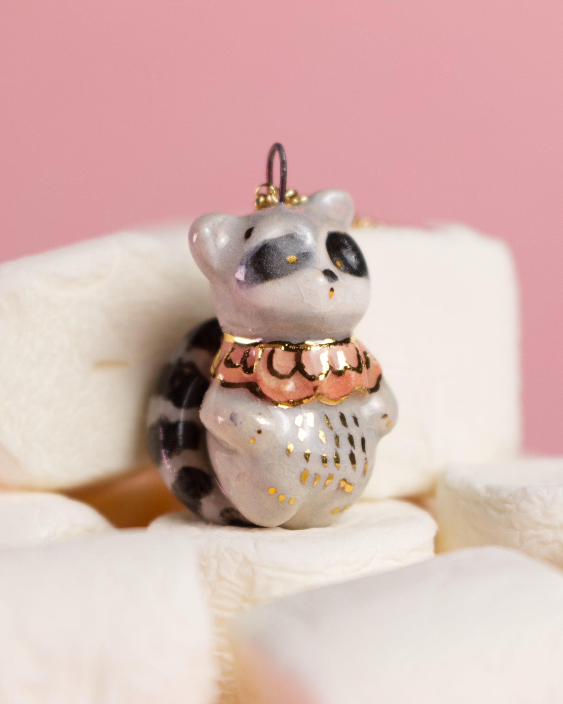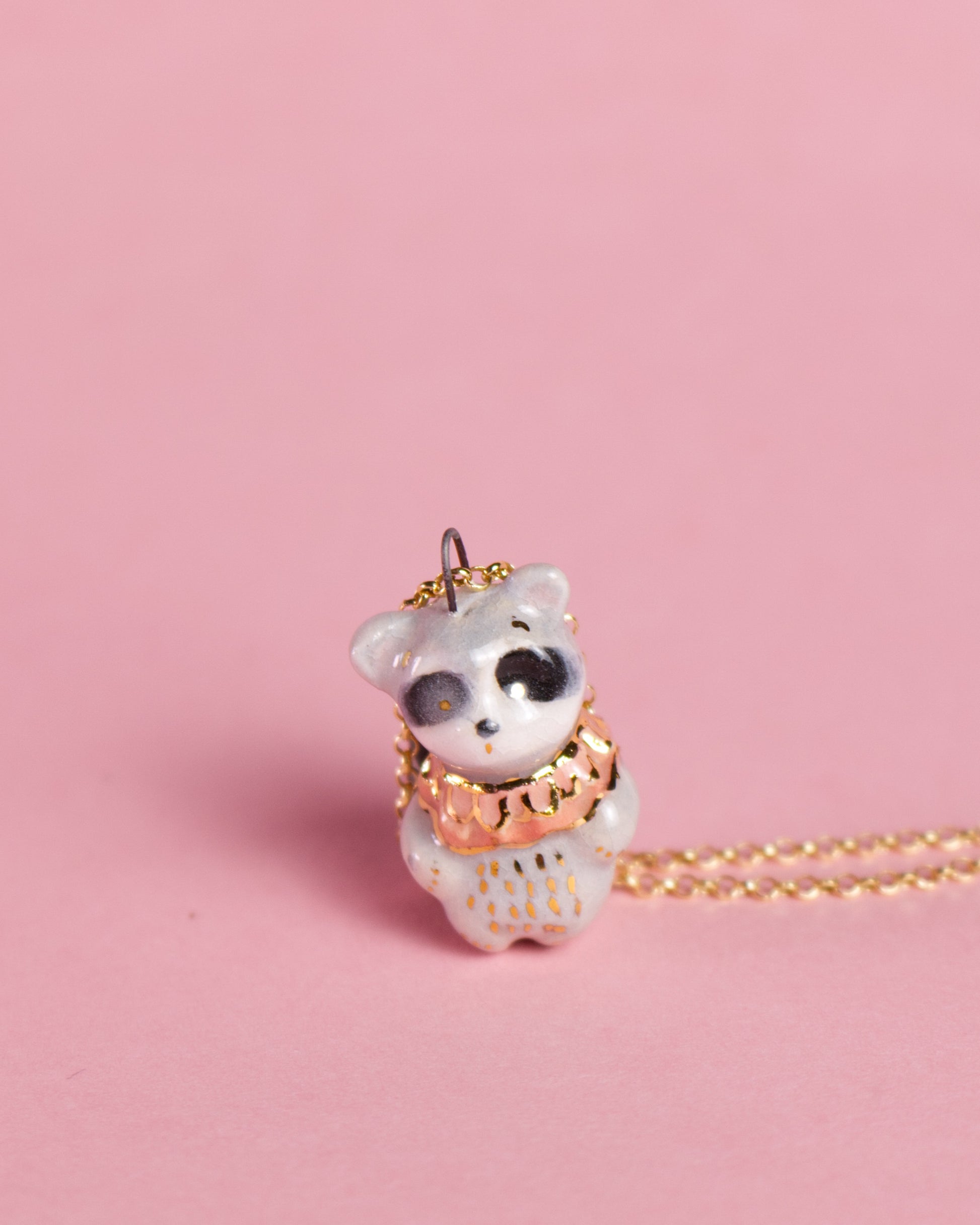 Ručne tvarovaný keramický prívesok – medvedík čistotný Tomy (druhý výpal pri 1040 °C)