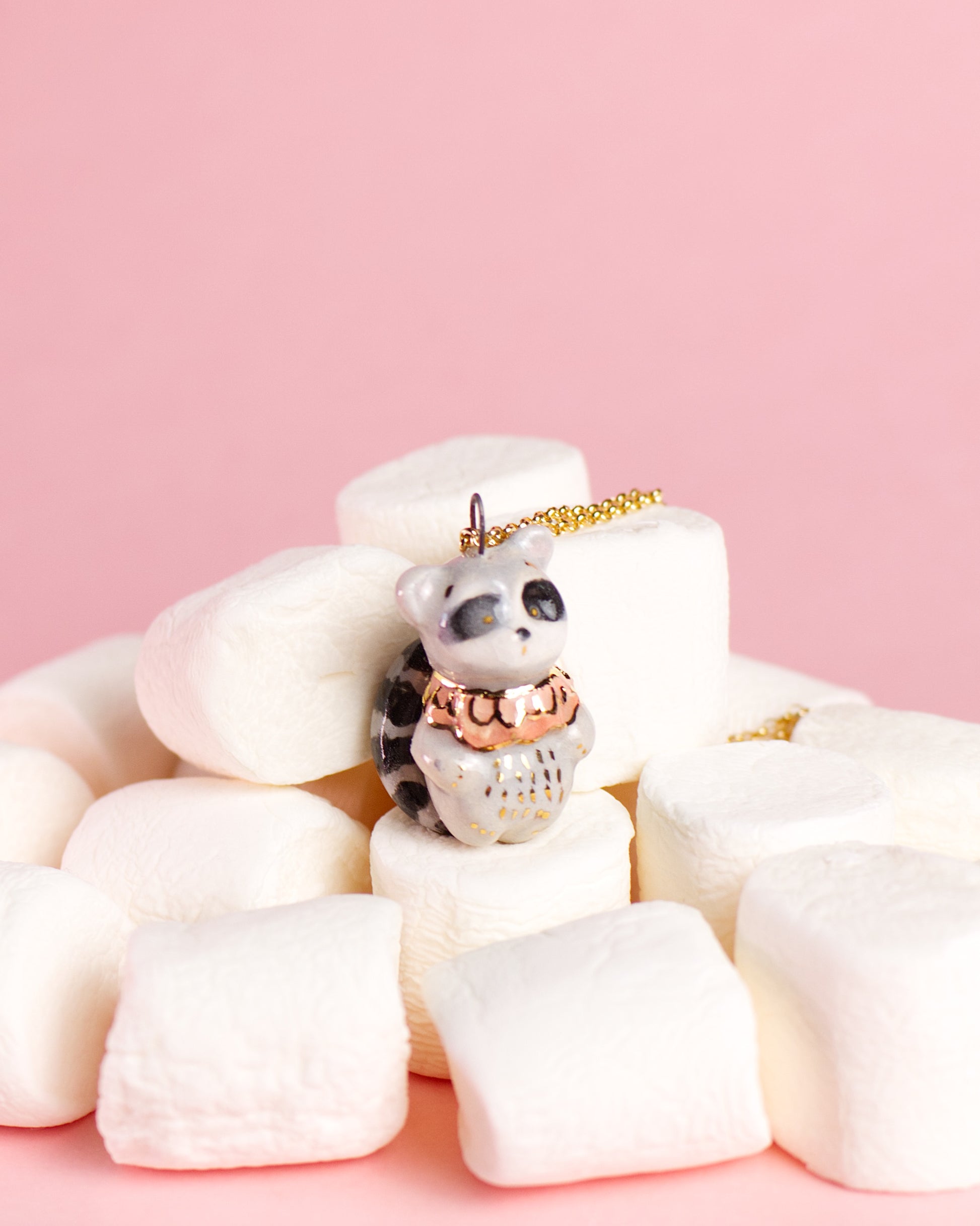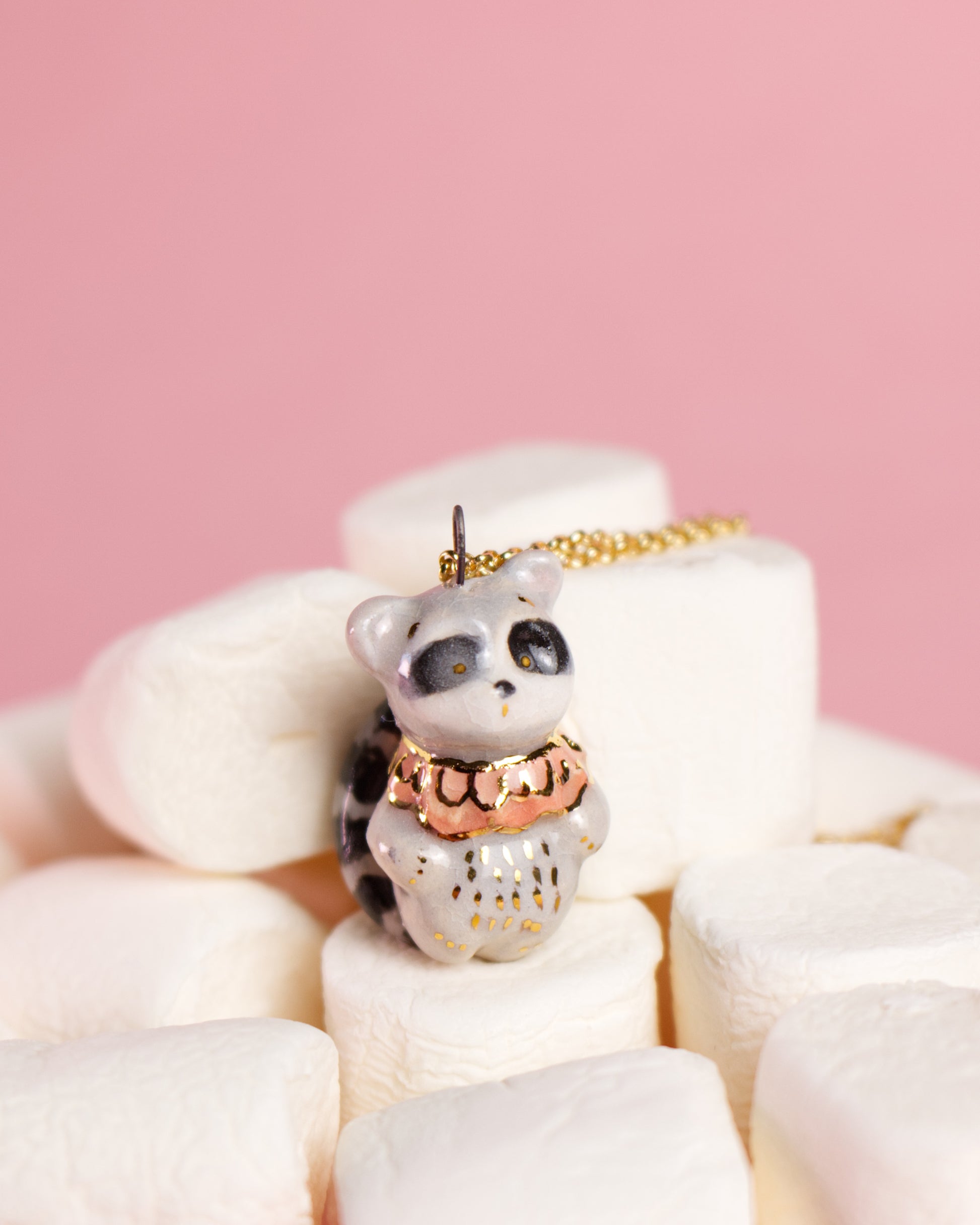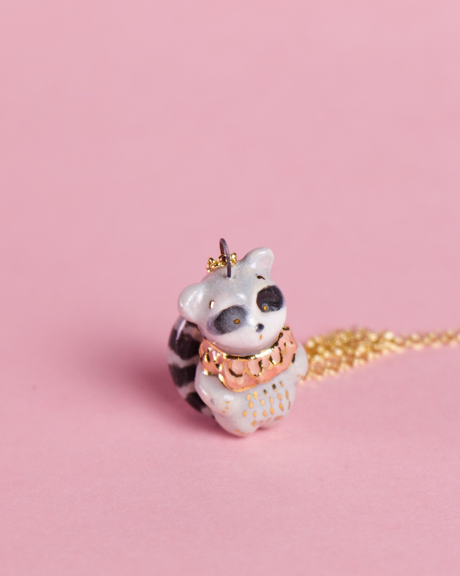 Ručne tvarovaný keramický prívesok – medvedík čistotný Tomy (druhý výpal pri 1040 °C)